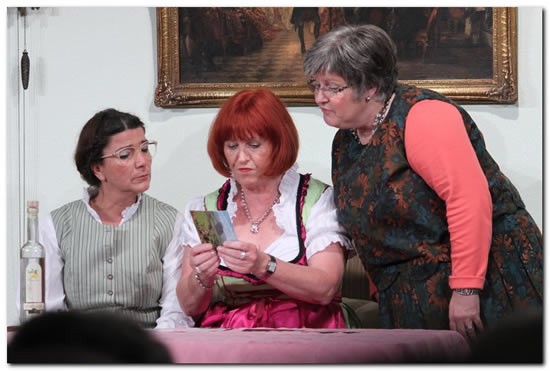 Berjers Ingelein föllt sofott de Böhn on nömmt et Poblekom routineeht met. Ne jelongene Start. Noh on noh träde de angere Darsteller ent Jeschiehe en. De mieschde erfahrene Hase. Äwwer met Flöchters Ivche och ne scharmante nüe Höpper. Dä stellt sech schnell als schauspeeleresche Jlöcksjreff erus. E Natortalent met kinn Schweerichkeete bei de Mongkaht. Hee sei anerkennend erwähnt, dat Öwerdrarung von däm Stöck ent Rheinesche dörch Freudenberchs Heldche de Häzze von alle Mongkahtfrönde höhder schläje lösst. Rechtichjonnd jot! Doför künnt äwwer ehr Outfit als Pollezistin em Stöck jet mieh de Roll anjepasst wehde. Dat sech Darstellerrinne dörch de Komik vom Stöck on dörch en verkäldongsbedengte Ussprochevarijante von Metspeelerin Walli Mußbach e Jriene nit verkniepe kunnde, hät bei de Zockicker sympathesch Schmonzele usjelösst. |